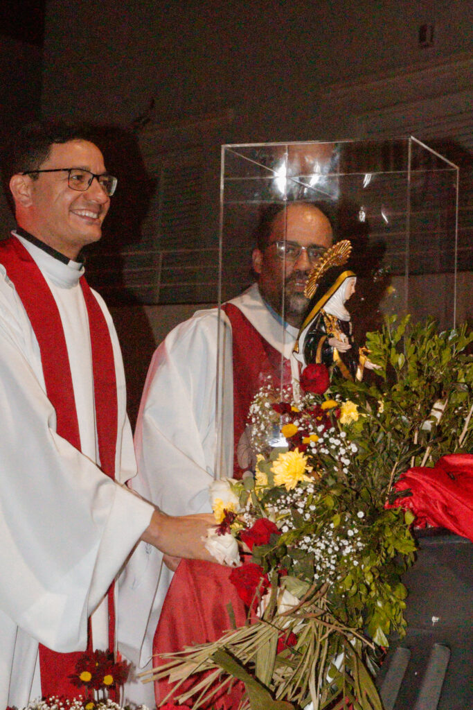 A Santa Missa foi presidida pelo Pe. Michel Pires, reitor do Santuário de Santa Rita de Cássia, e concelebrada pelo pároco da comunidade, Pe. Alessandro Oliveira Faria. Durante a celebração, os fiéis expressaram sua fé viva, acolhendo a padroeira das causas impossíveis com amor e esperança.