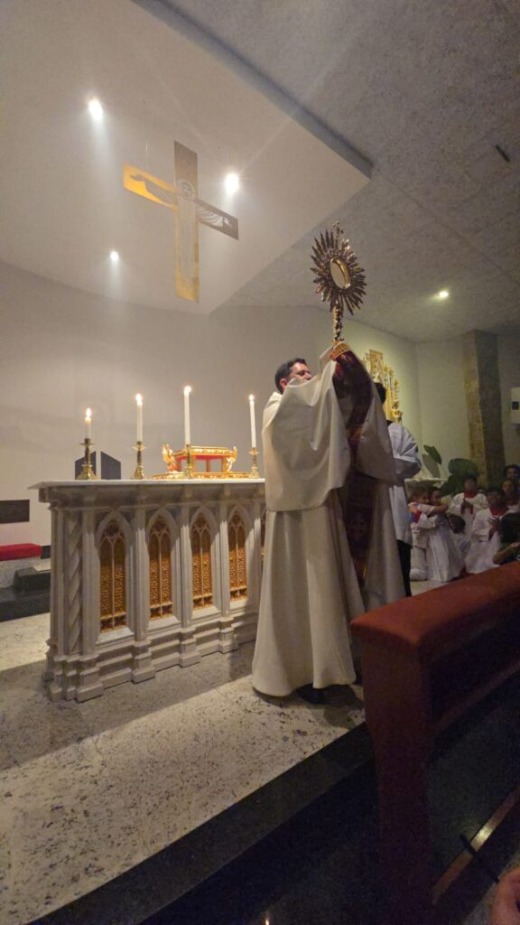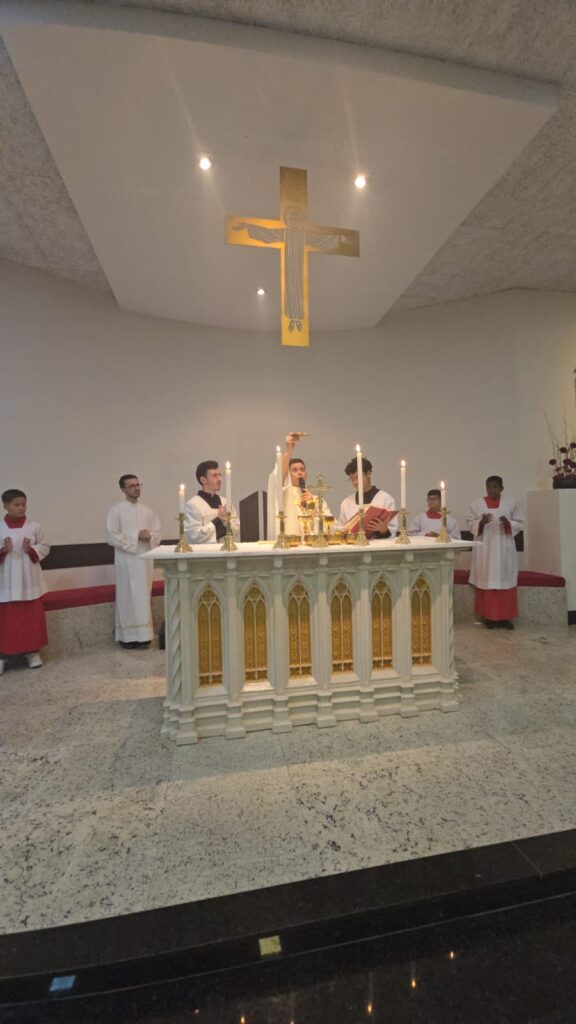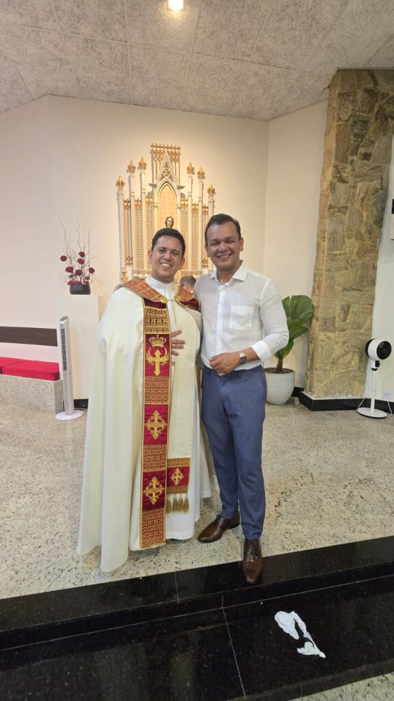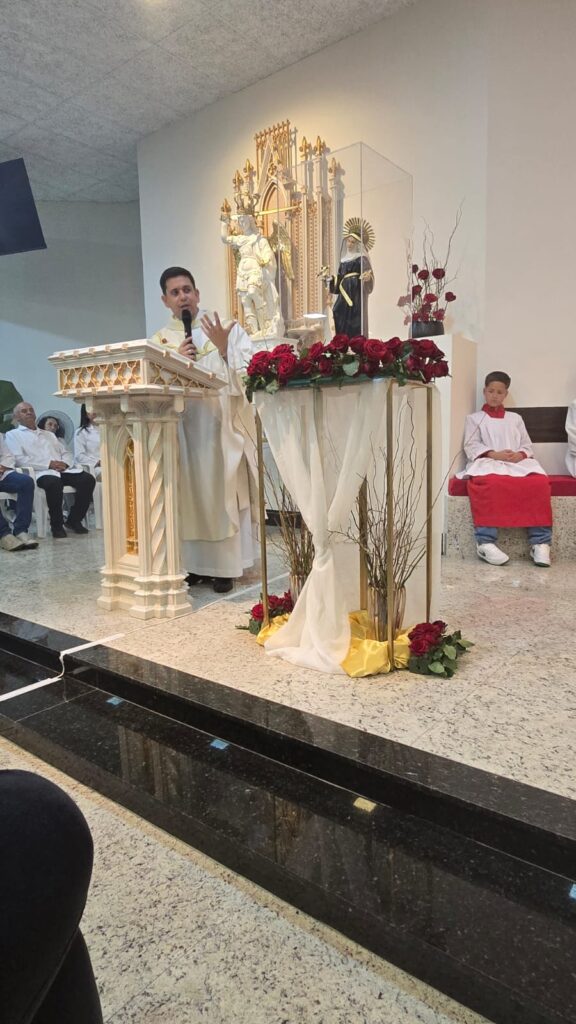 A Santa Missa foi presidida pelo Padre Dione Piza, vice-reitor do Santuário Santa Rita de Cássia, que conduziu a celebração com profunda espiritualidade e carinho pelos fiéis presentes.