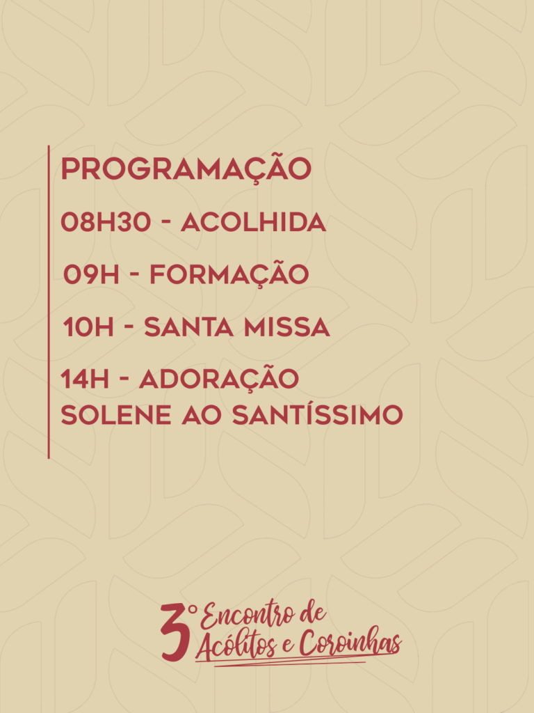 No próximo dia 17 de agosto, o Santuário de Santa Rita de Cássia será o cenário de mais um momento especial de fé, formação e comunhão: o 3º Encontro de Acólitos e Coroinhas.