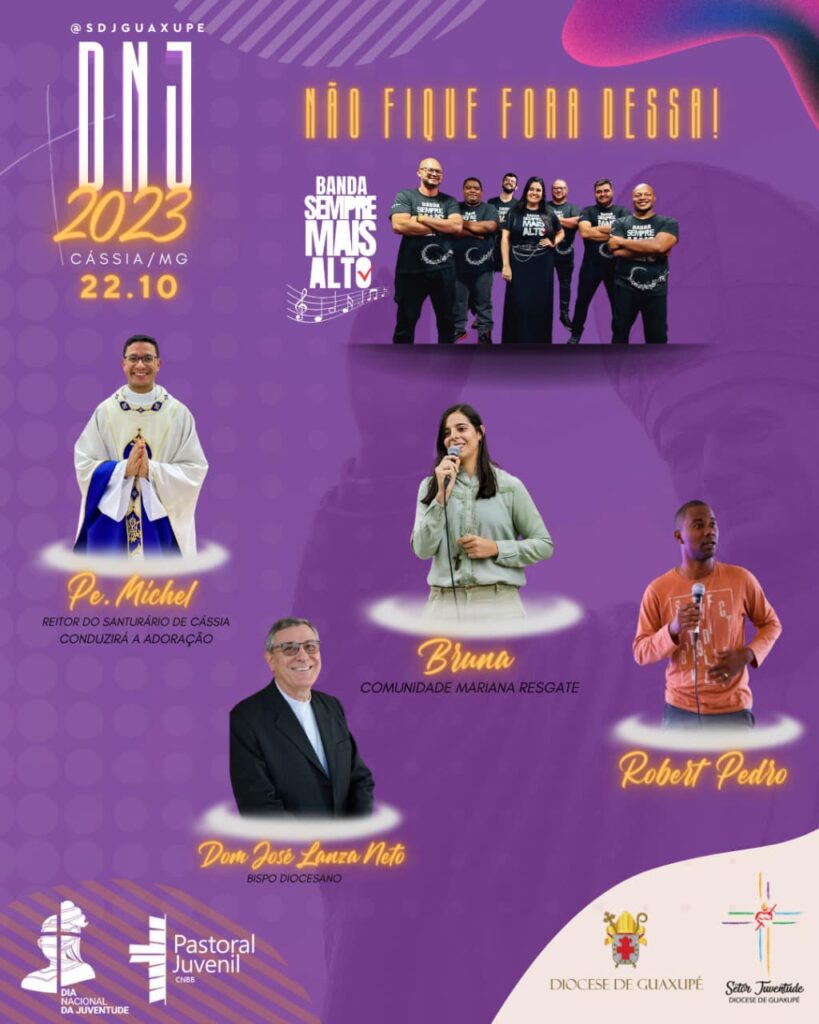 O encontro terá a participação do Padre Rhilton Roger, Padre Michel Pires, reitor do Santuário de Cássia e animação da banda Sempre Mais Alto.